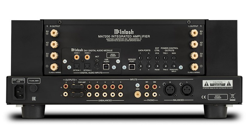 McIntosh MA7200 được tích hợp DA1 Digital Audio Module, sử dụng chip DAC 8 kênh 32-bit, hỗ trợ đầy đủ các định dạng như DSD256 và DXD 384kHz, cùng các đầu vào số gồm 2 coaxial, 2 optical, USB, MCT (SACD). Người dùng có thể nâng cấp module này trong tương lai (ví dụ DA2) để theo kịp công nghệ mới. Cho phép người nghe tinh chỉnh tần số (30Hz, 250Hz, 1kHz, 4kHz, 10kHz) theo gu âm thanh riêng, giúp MA7200 vừa trung thực, vừa linh hoạt.