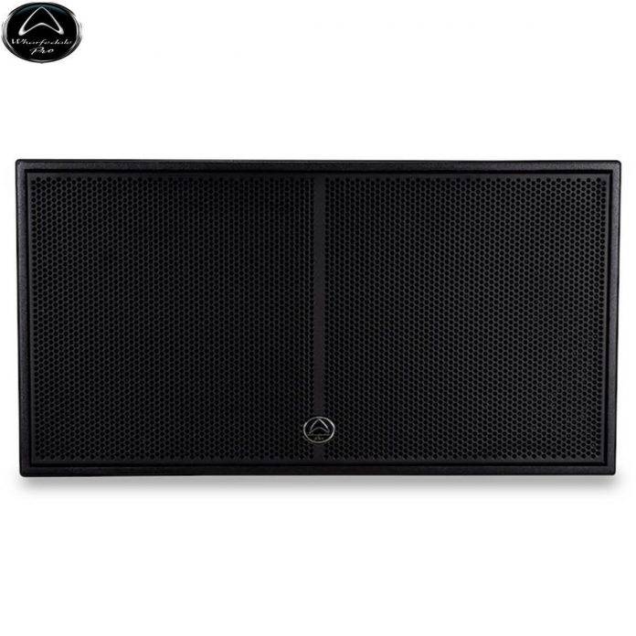 Mặt trước của mẫu loa Wharfedale WLA-310 là tấm ê căng được làm bằng thép không gỉ giúp bảo vệ củ loa an toàn khỏi va đập. Logo thương hiệu Wharfedale Pro màu trắng nổi bật trên tấm ê căng đen này.