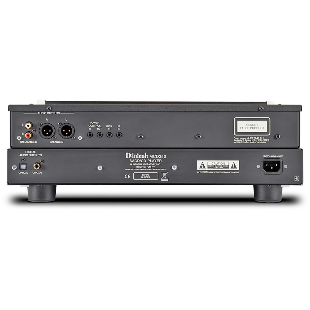 Toàn bộ thân máy được chế tác bằng thép không gỉ dày, có độ cứng vững cao giúp triệt tiêu cộng hưởng cơ học và chống nhiễu điện từ. Thiết kế này không chỉ bền bỉ mà còn mang lại cảm giác sang trọng, đặc trưng của McIntosh. MCD350 cung cấp cổng xuất tín hiệu XLR cân bằng, giúp truyền tải âm thanh ổn định hơn, hạn chế nhiễu, đặc biệt khi phối ghép cùng các ampli hi-end McIntosh hoặc thiết bị chuyên nghiệp khác. Dấu ấn thị giác không thể nhầm lẫn mặt kính đen, logo xanh lục và đồng hồ hiển thị màu xanh Power Blue – khiến MCD350 vừa hiện đại vừa mang đậm phong cách biểu tượng. Đây không chỉ là thiết bị âm thanh, mà còn là món đồ nghệ thuật sưu tầm đích thực.