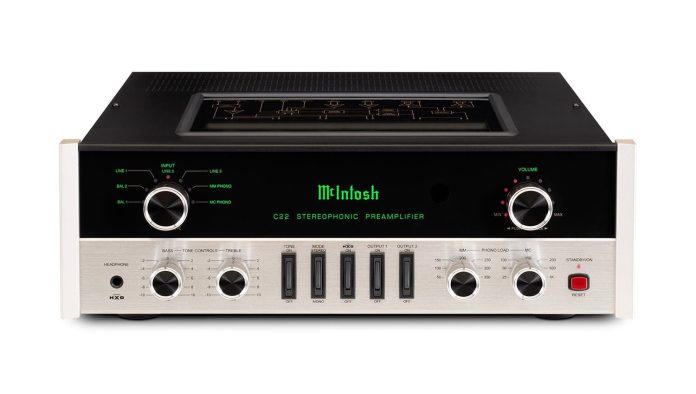 McIntosh C-22 là một trong những preamp đèn mang tính biểu tượng của McIntosh, phiên bản hiện đại (Mk IV / Mk V) tái sinh tinh thần bản gốc nhưng với linh kiện và tính năng phù hợp hệ hi-fi ngày nay. Nó phục vụ như trung tâm điều khiển khi chọn nguồn, xử lý phono, tone control và điều khiển volume cho hệ stereo.