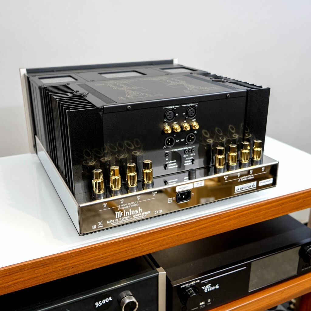 McIntosh MC312 là power ampli stereo solid-state thuộc dòng cao cấp của McIntosh, được phát triển để đem lại công suất lớn, độ ổn định và tính dễ phối ghép đặc trưng. Nhà sản xuất công bố 300 W mỗi kênh tại 2/4/8 Ω; thiết kế Autoformer™ giúp ampli có khả năng cung cấp công suất tối ưu cho loa có trở kháng khác nhau. Biến áp đầu ra độc quyền của McIntosh giúp ampli duy trì công suất thực tế ở 2/4/8 Ω mà không phụ thuộc quá nhiều vào đặc tính loa, rất hữu ích khi ghép với loa có trở kháng thay đổi. MC312 được nâng cấp bộ nguồn và tụ lọc so với thế hệ trước, cho dynamic headroom tăng (McIntosh tiết lộ mức cải thiện theo số liệu nội bộ), tức ampli giữ được lực ở những đỉnh âm mạnh mẽ. THD ở mức rất thấp (thông số công bố ~0.005% ở vùng hoạt động), tỉ số tín hiệu trên nhiễu cao (~120 dB balanced), đảm bảo nền âm sạch và chi tiết. Mạch thiết bị sạch giúp triệt nhiễu common-mode, tăng độ tương phản và giữ nền âm tĩnh.